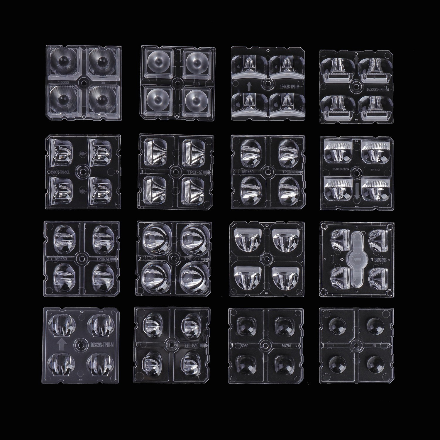 | Наименование продукта: | 2х2 модули Led PMMA линза, Led линза массив для IESNA II типа дорожного освещения | Материал: | ПММА |